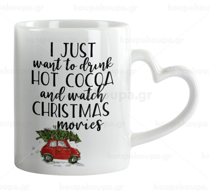 I just want to drink hot cocoa and watch christmas movies mini cooper, Mug heart handle, ceramic, 330ml