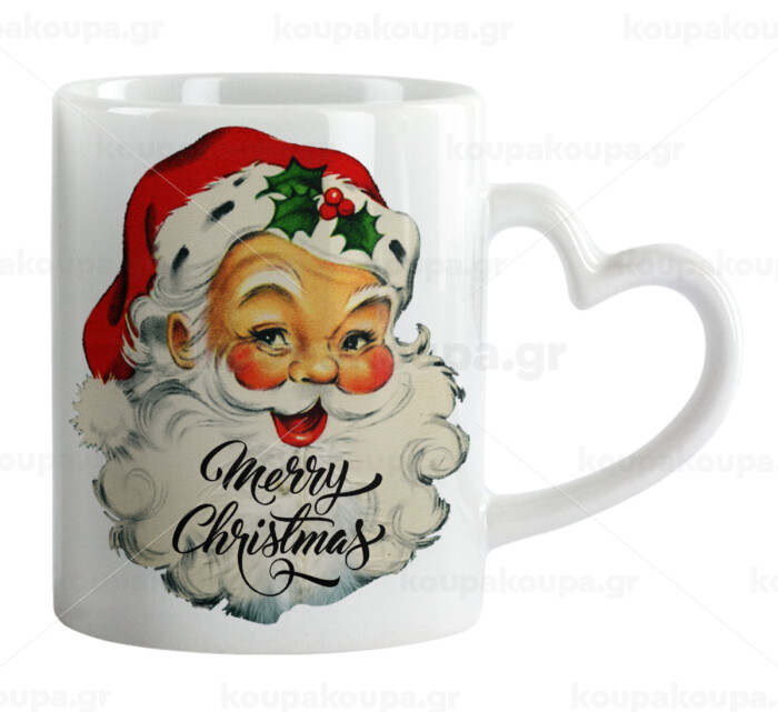 Santa vintage, Mug heart handle, ceramic, 330ml
