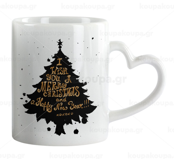 Tree, i wish you a merry christmas and a Happy New Year!!! xoxoxo, Mug heart handle, ceramic, 330ml