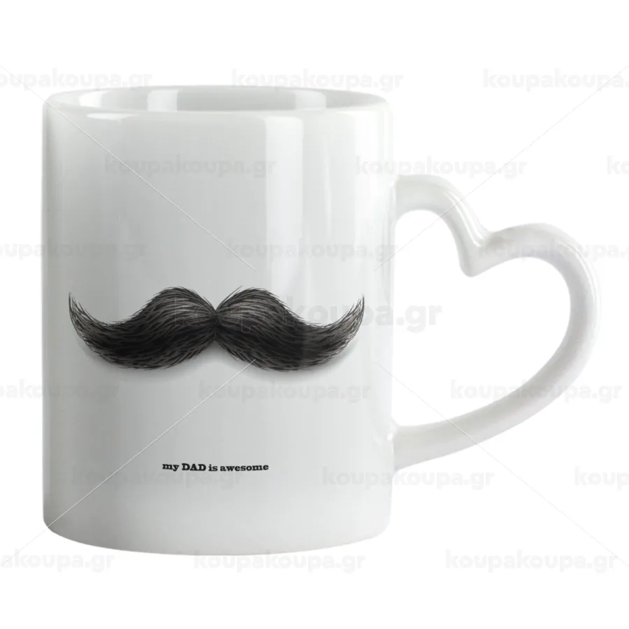 Ο καλύτερος μουστακαλής του κόσμου!!!, Mug heart handle, ceramic, 330ml