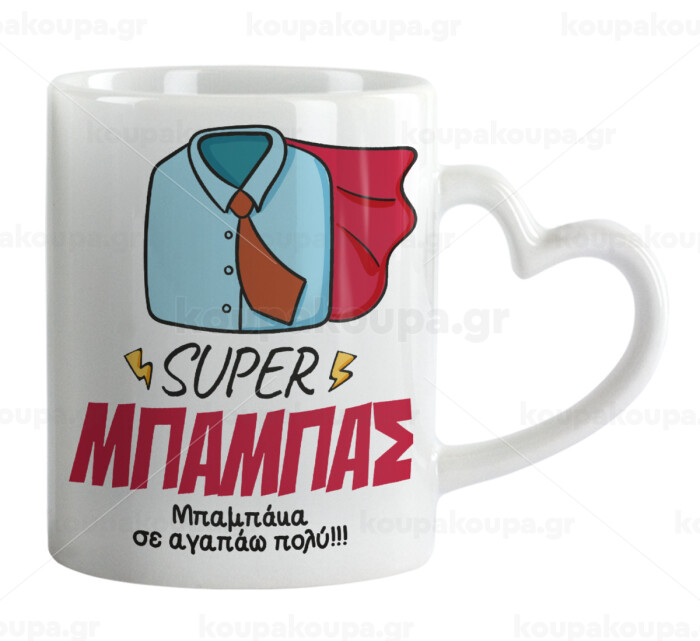 SUPER ΜΠΑΜΠΑΣ, Mug heart handle, ceramic, 330ml