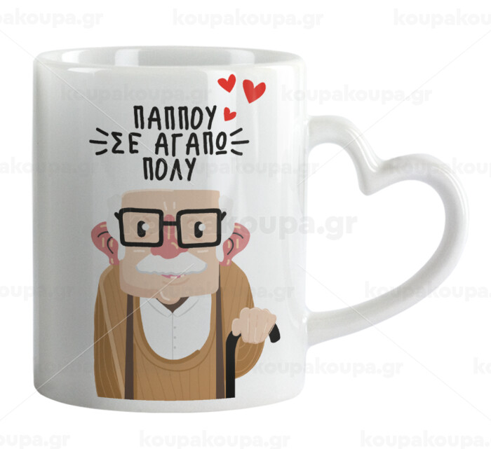 Παππού σε αγαπώ πολύ!, Mug heart handle, ceramic, 330ml