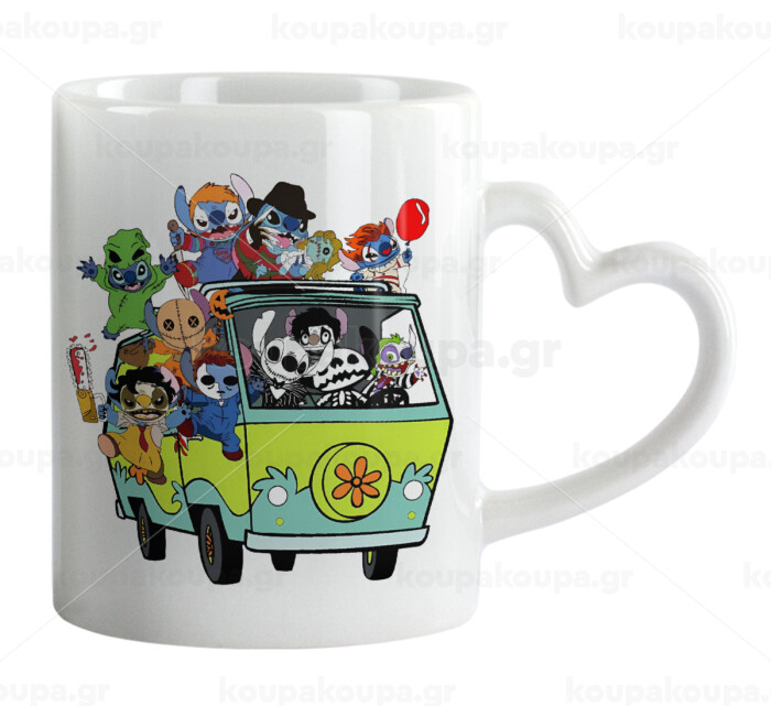 Stitch Halloween scooby car, Mug heart handle, ceramic, 330ml