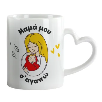 Μανούλα σ'αγαπώ αγκαλιά!, Mug heart handle, ceramic, 330ml