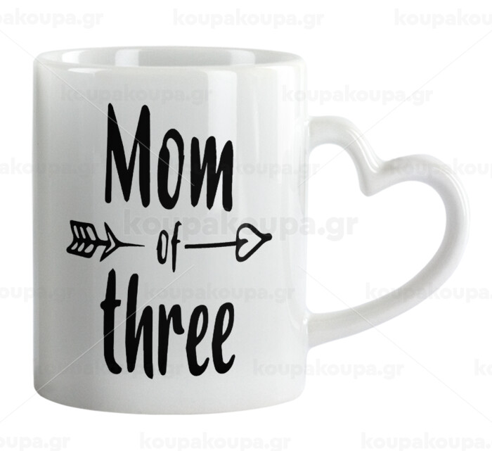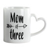 Mom of three, Mug heart handle, ceramic, 330ml