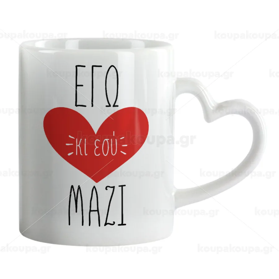 Εγώ κι εσύ μαζί!, Mug heart handle, ceramic, 330ml