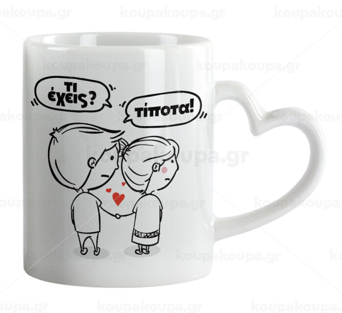 Τι έχεις? Τίποτα!, Mug heart handle, ceramic, 330ml