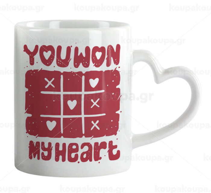 Τρίλιζα you won my heart, Mug heart handle, ceramic, 330ml