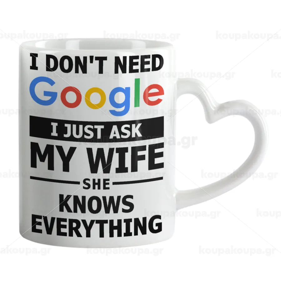 I don't need Google, just ask my WIFE, Mug heart handle, ceramic, 330ml