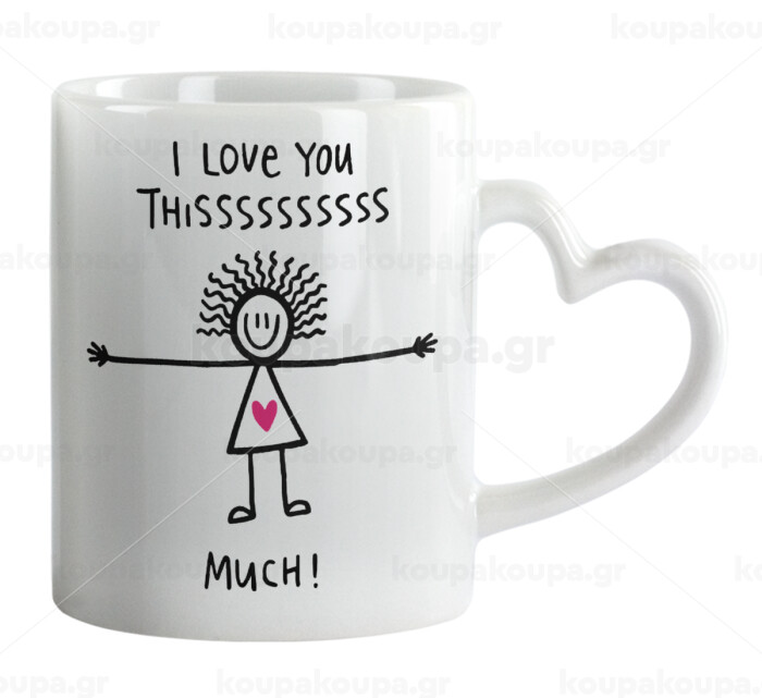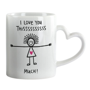 I Love you thissss much..., Mug heart handle, ceramic, 330ml