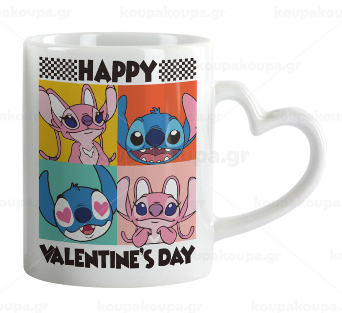 Lilo & Stitch Happy valentines day, Mug heart handle, ceramic, 330ml