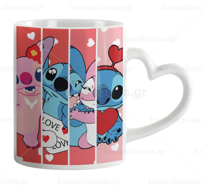 Lilo & Stitch Love, Mug heart handle, ceramic, 330ml