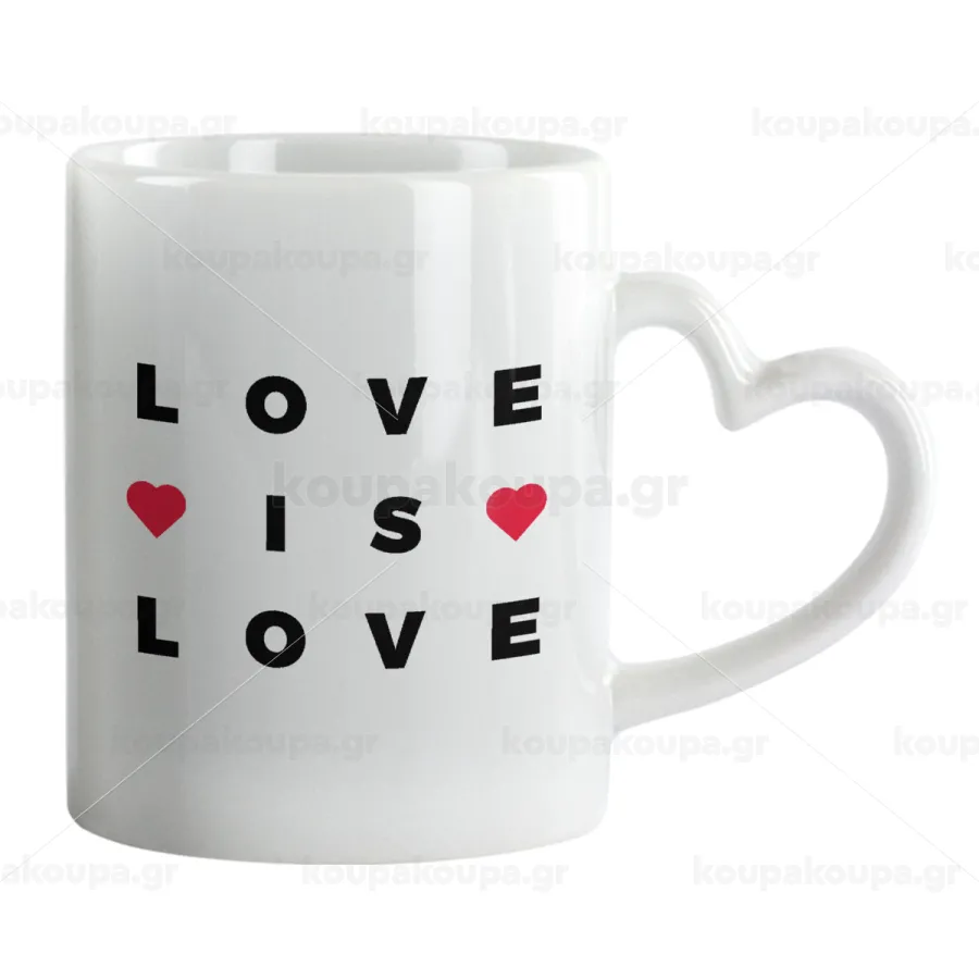 Love is Love, Mug heart handle, ceramic, 330ml