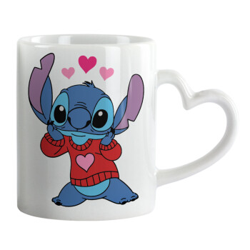 Stitch heart, Mug heart handle, ceramic, 330ml