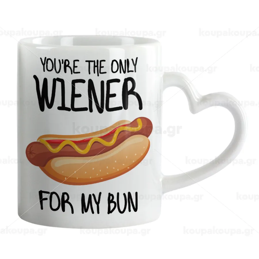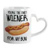 You re the only wiener for my bun, Mug heart handle, ceramic, 330ml