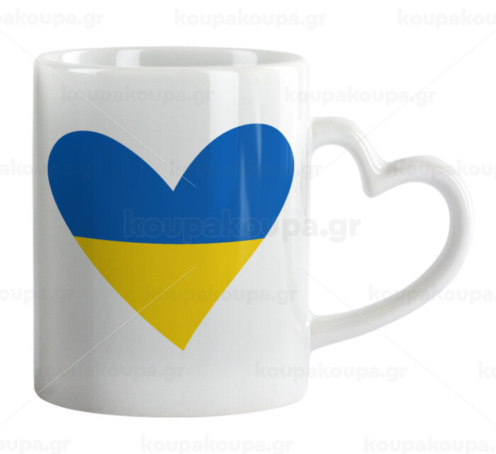UKRAINE heart, Mug heart handle, ceramic, 330ml