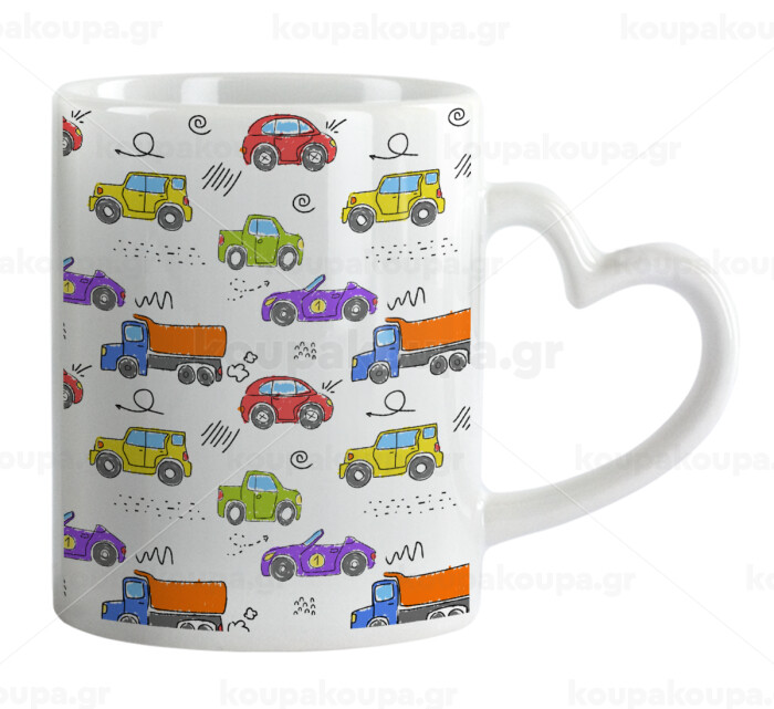 Colorful cars, Mug heart handle, ceramic, 330ml