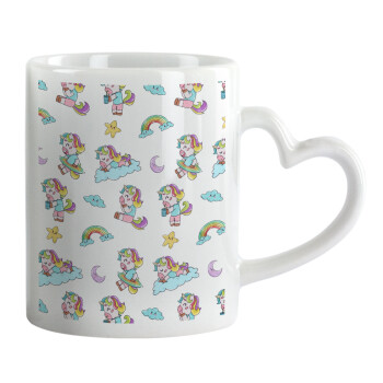 Unicorn pattern, Mug heart handle, ceramic, 330ml