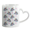 Mug with handle in the shape of a heart, glossy, excellent quality, with bright colors. Dishwasher safe, microwave safe. Use it for hot and cold drinks.