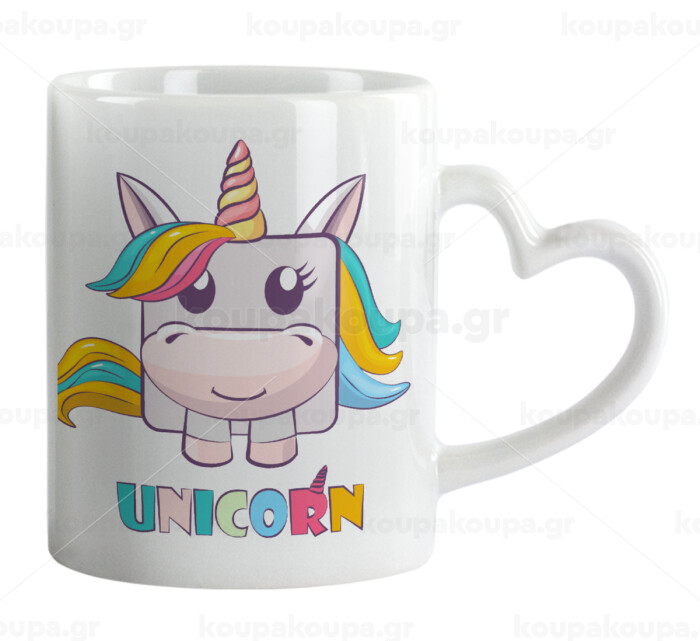 Unicorns cube, Mug heart handle, ceramic, 330ml
