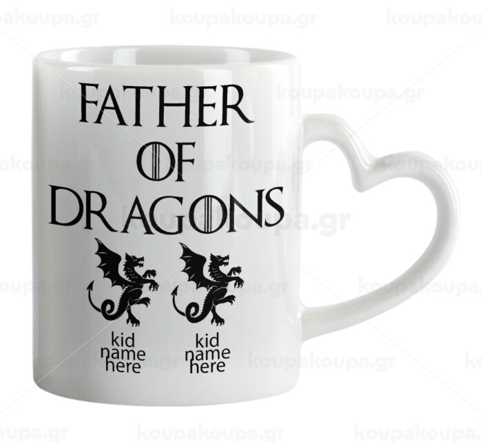 GOT, Father of Dragons (με ονόματα παιδικά), Mug heart handle, ceramic, 330ml