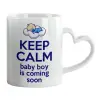 KEEP CALM baby boy is coming soon!!!, Mug heart handle, ceramic, 330ml