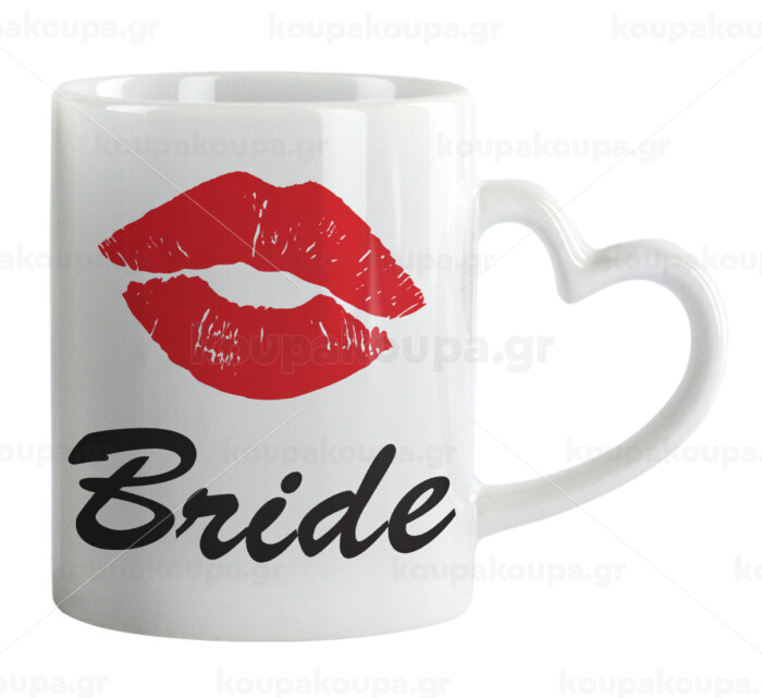 Bride kiss, Mug heart handle, ceramic, 330ml