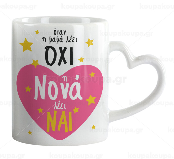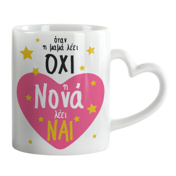 Η νονά λέει ναι!!!, Mug heart handle, ceramic, 330ml