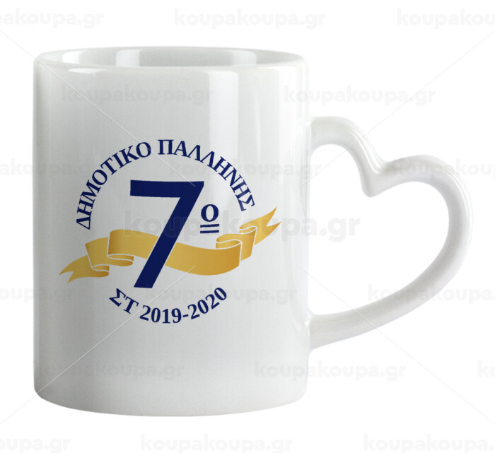 Σχολική μπλε με κορδέλα, Mug heart handle, ceramic, 330ml