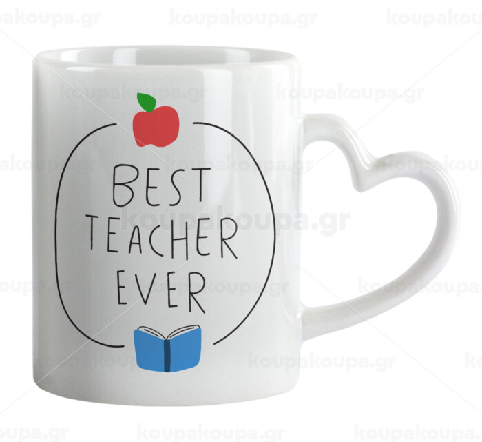Best teacher ever, Mug heart handle, ceramic, 330ml