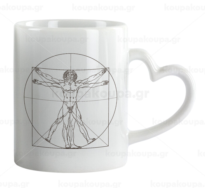Leonardo da vinci Vitruvian Man, Mug heart handle, ceramic, 330ml