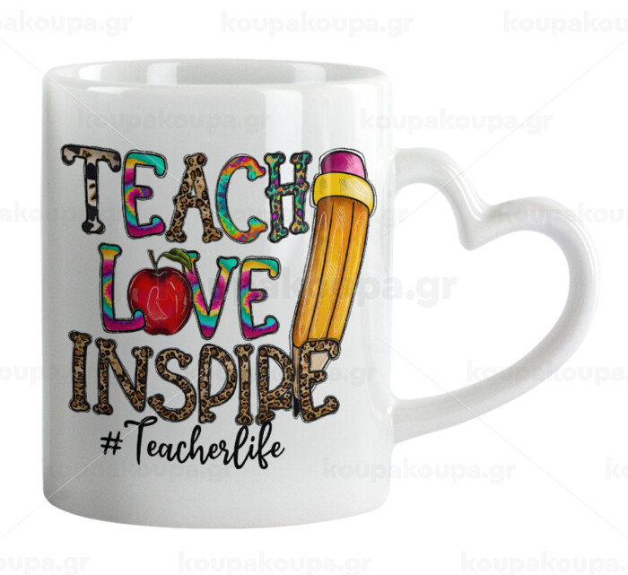 Teach, Love, Inspire, Mug heart handle, ceramic, 330ml