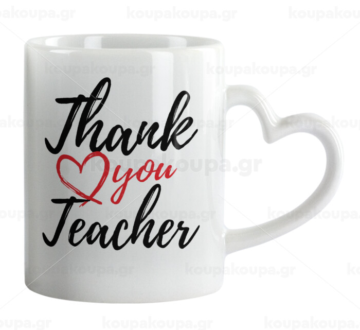 Thank you teacher, Mug heart handle, ceramic, 330ml