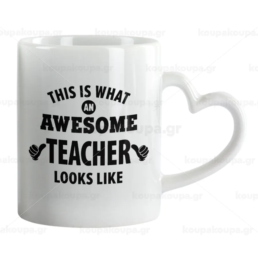 This is what an awesome teacher looks like hands!!! , Mug heart handle, ceramic, 330ml