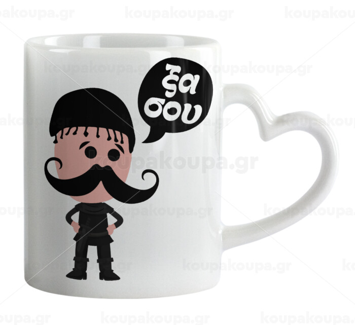 Κρητικός "Ξα σου", Mug heart handle, ceramic, 330ml