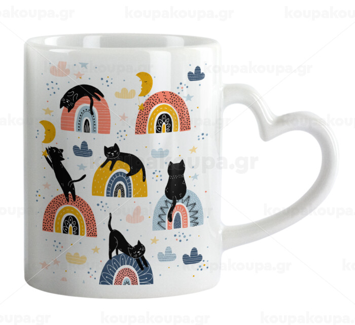 Γατούλες, Mug heart handle, ceramic, 330ml