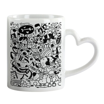 DOG pattern, Mug heart handle, ceramic, 330ml