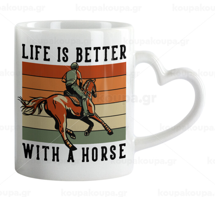 Life is Better with a Horse, Mug heart handle, ceramic, 330ml