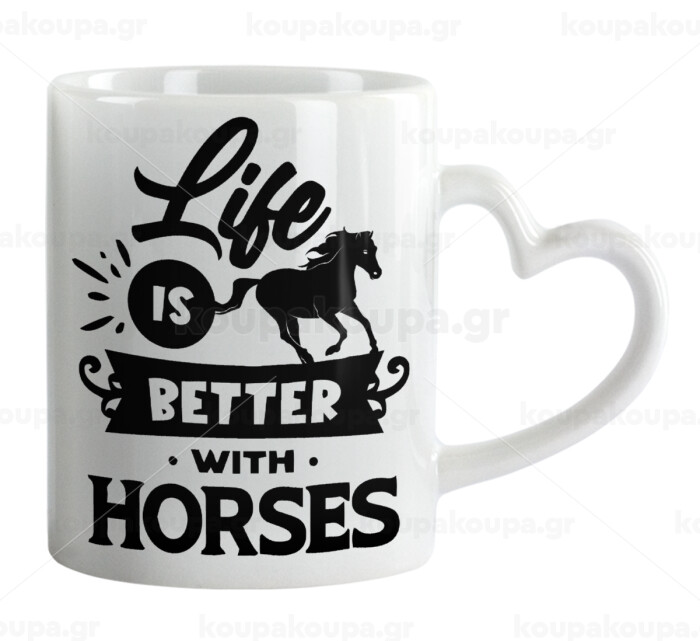 Life is Better with a Horses, Mug heart handle, ceramic, 330ml