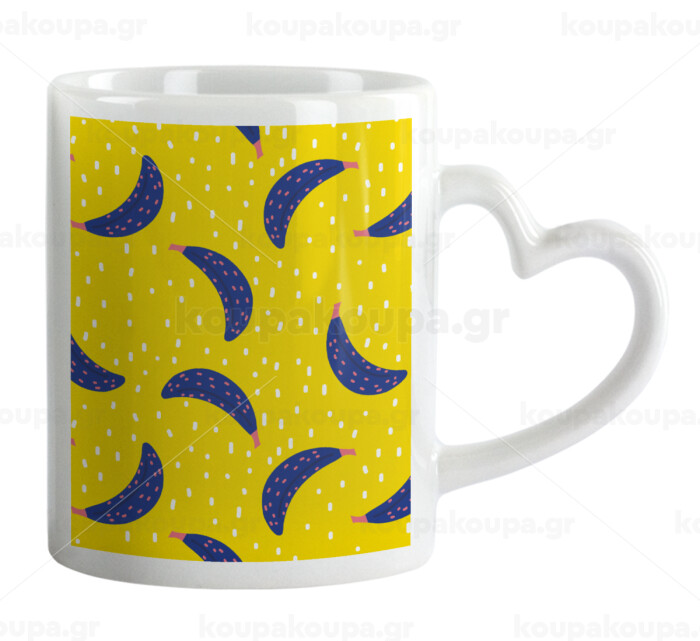 Yellow seamless with blue bananas, Mug heart handle, ceramic, 330ml
