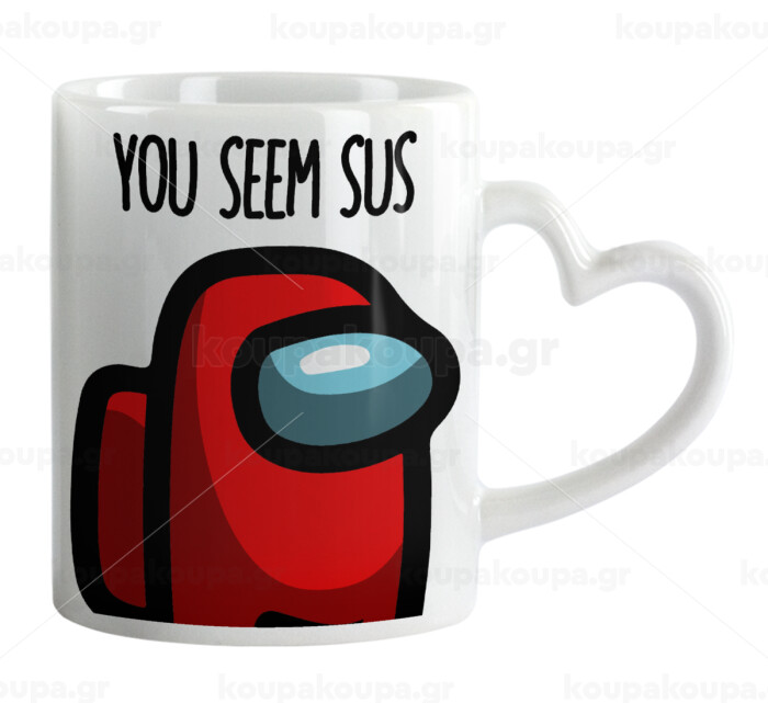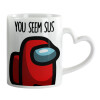 Among US, you seem sus, Mug heart handle, ceramic, 330ml