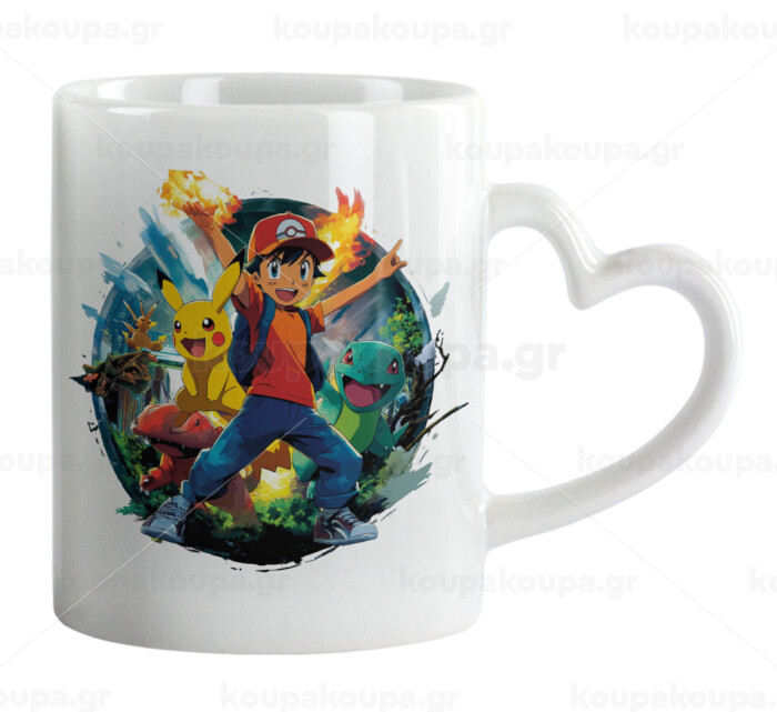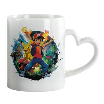 Ash Ketchum & Pikachu, Mug heart handle, ceramic, 330ml