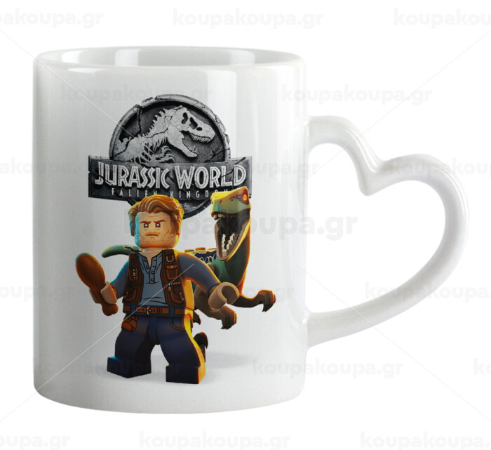Jurassic world, Mug heart handle, ceramic, 330ml