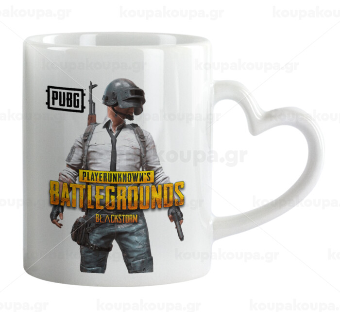 PUBG battleground royale, Mug heart handle, ceramic, 330ml