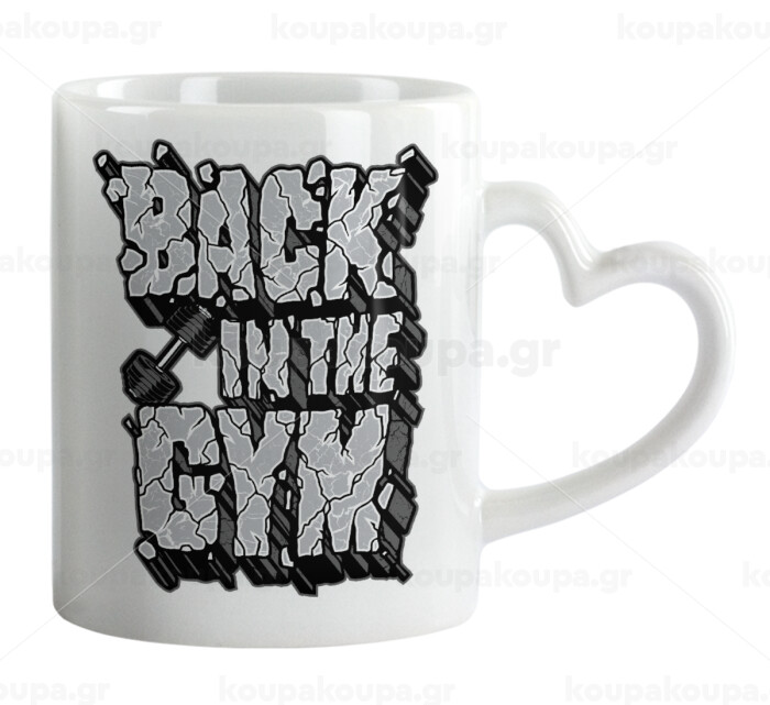 Back in the GYM, Mug heart handle, ceramic, 330ml