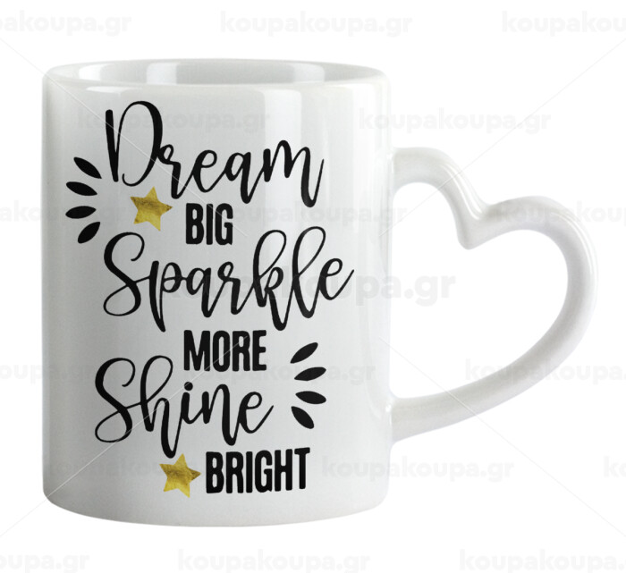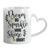 Dream big, Sparkle more, Shine bright, Mug heart handle, ceramic, 330ml