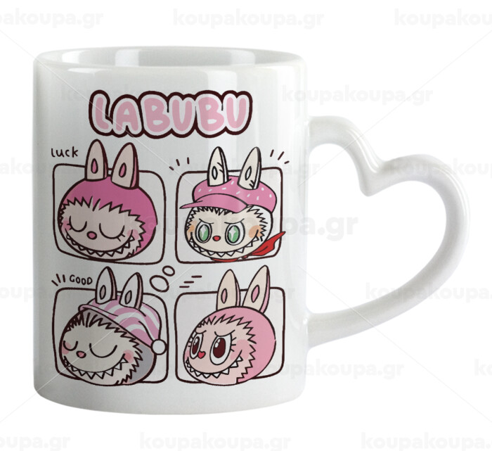 Labubu pink, Mug heart handle, ceramic, 330ml
