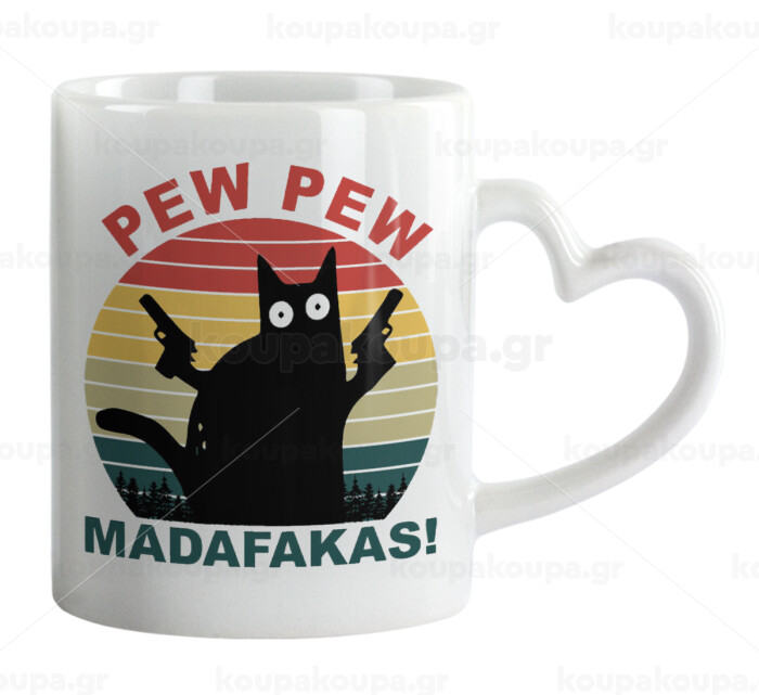 PEW PEW madafakas, Mug heart handle, ceramic, 330ml