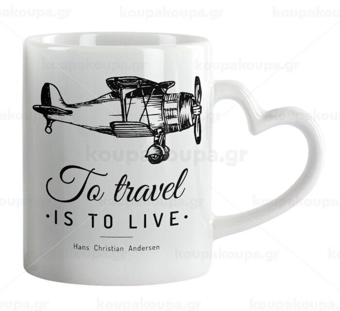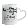 To travel is to live, Mug heart handle, ceramic, 330ml