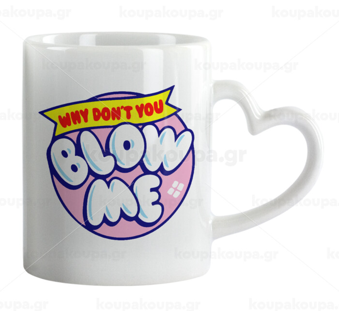Why Don't You Blow Me Funny, Mug heart handle, ceramic, 330ml